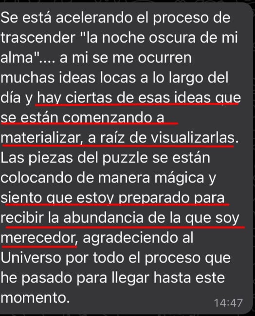 Sé lo difícil que es tratar de manifestar, lo difícil que es hackear tu mente para que se lo crea o lo complicado que son muchas rutinas de manifestación que casi requieren que medites todo el día. Por eso, en estos últimos años creé un método que me requiera solo 5min diarios para estar conectado con el campo cuántico y poder manifestar mayor riqueza y abundancia en mi vida.